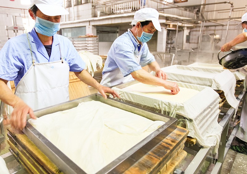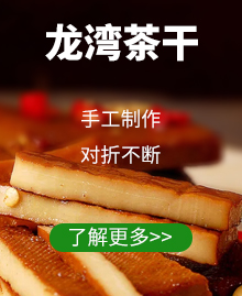 “龙湾”茶干秉承传统12道古法工艺,拥有新安江源头水质,采用优良大豆,确保不揭取豆腐衣、不添加防腐剂,并融合了古徽州传统饮食文化内涵与现代休闲食品要求等特点,形成了对折不断韧性好、回味悠长口齿留香的品质。
