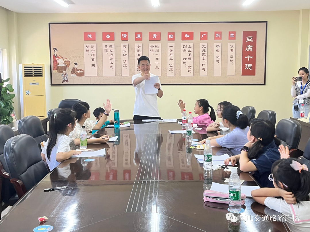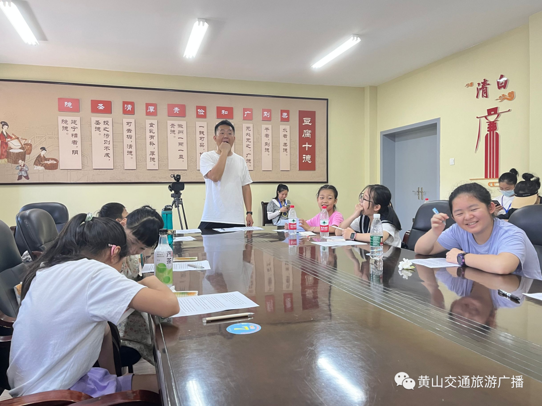 享受完豆腐宴,经过了一段时间的午休之后,小记者小主播们要放大招了。在黄山交通旅游广播记者和拍摄团队的指导下,将自己学习的讲解知识实际运用到了讲解拍摄中,为大家介绍了关于豆腐干的那些事。