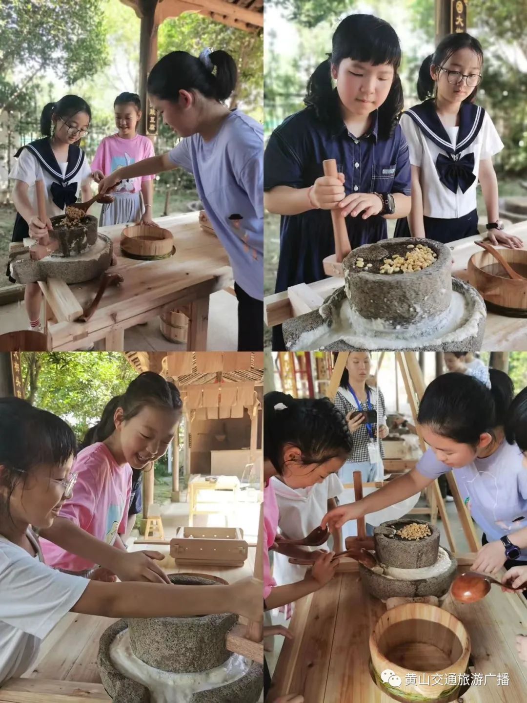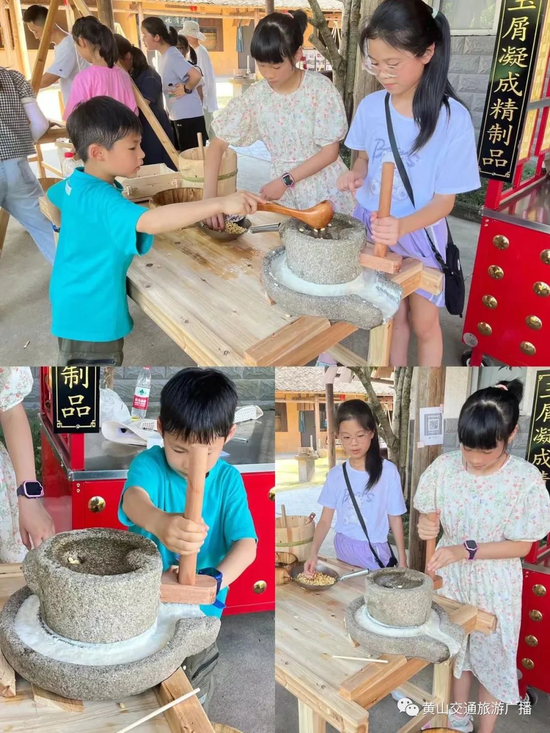 “你加豆子、我加水、她磨石磨”“你磨累了就换我吧”“我去加点水”
