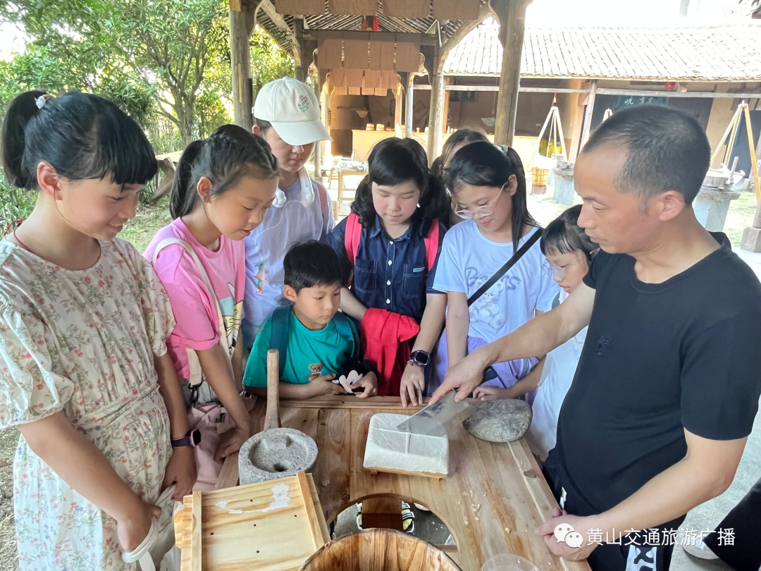7月10号,在黄山交通旅游广播携手徽州豆腐博物馆共同推出的“小小豆腐非遗传承人”主题实践活动中,1004小主播和小记者们不仅了解了豆腐的历史由来,开拓了自己的眼界,同时也学习了豆腐干的制作技巧,品尝了由自己亲手做出来的豆腐。